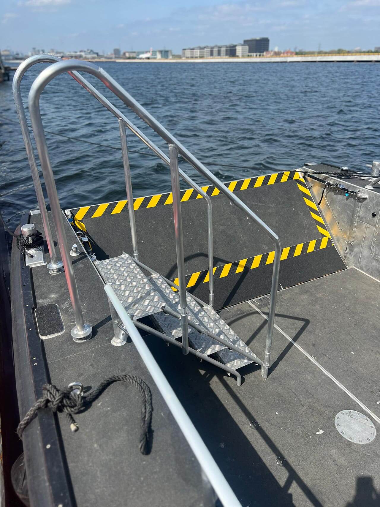 - Opening bow door for easy access to the waterline.