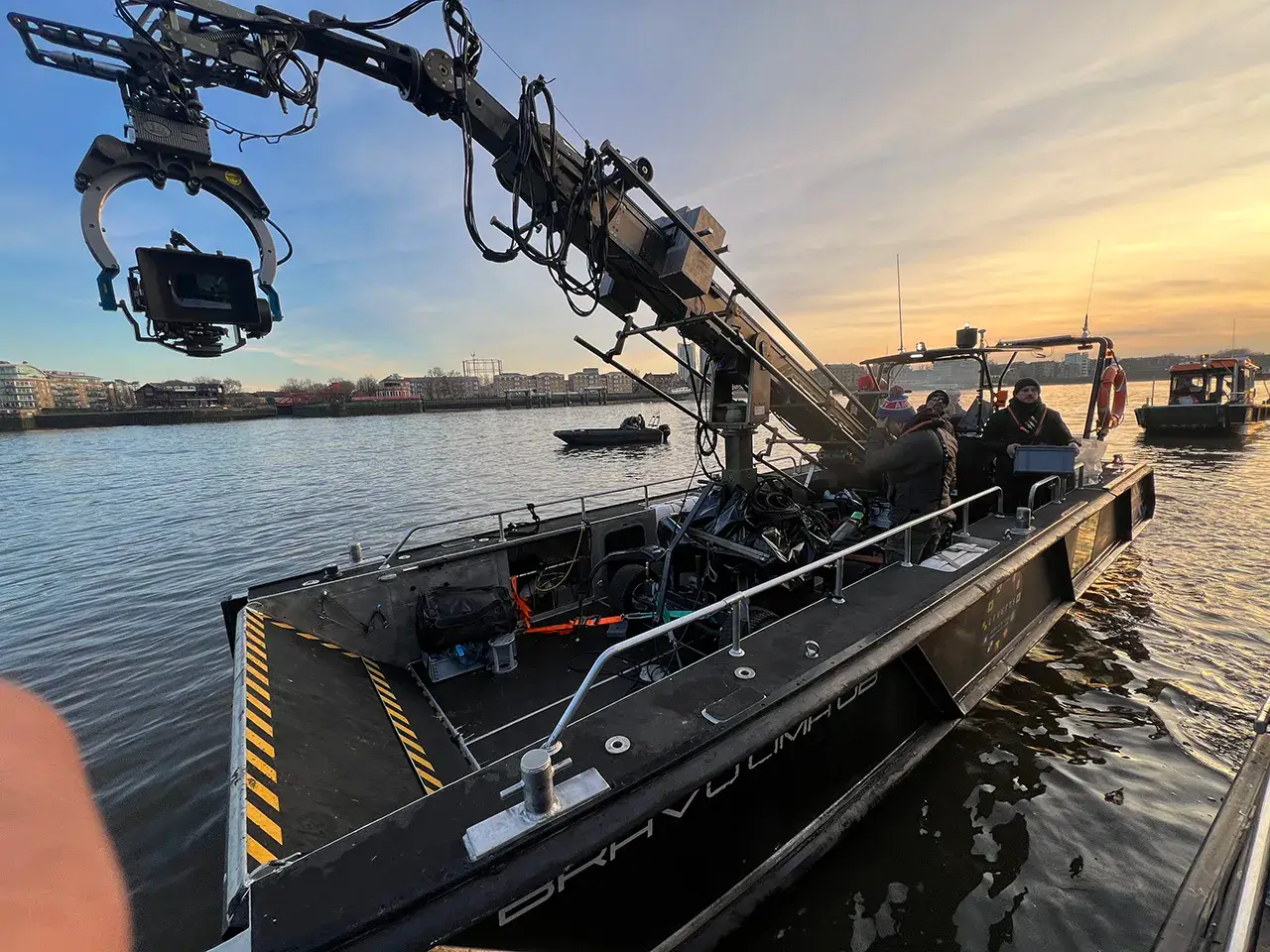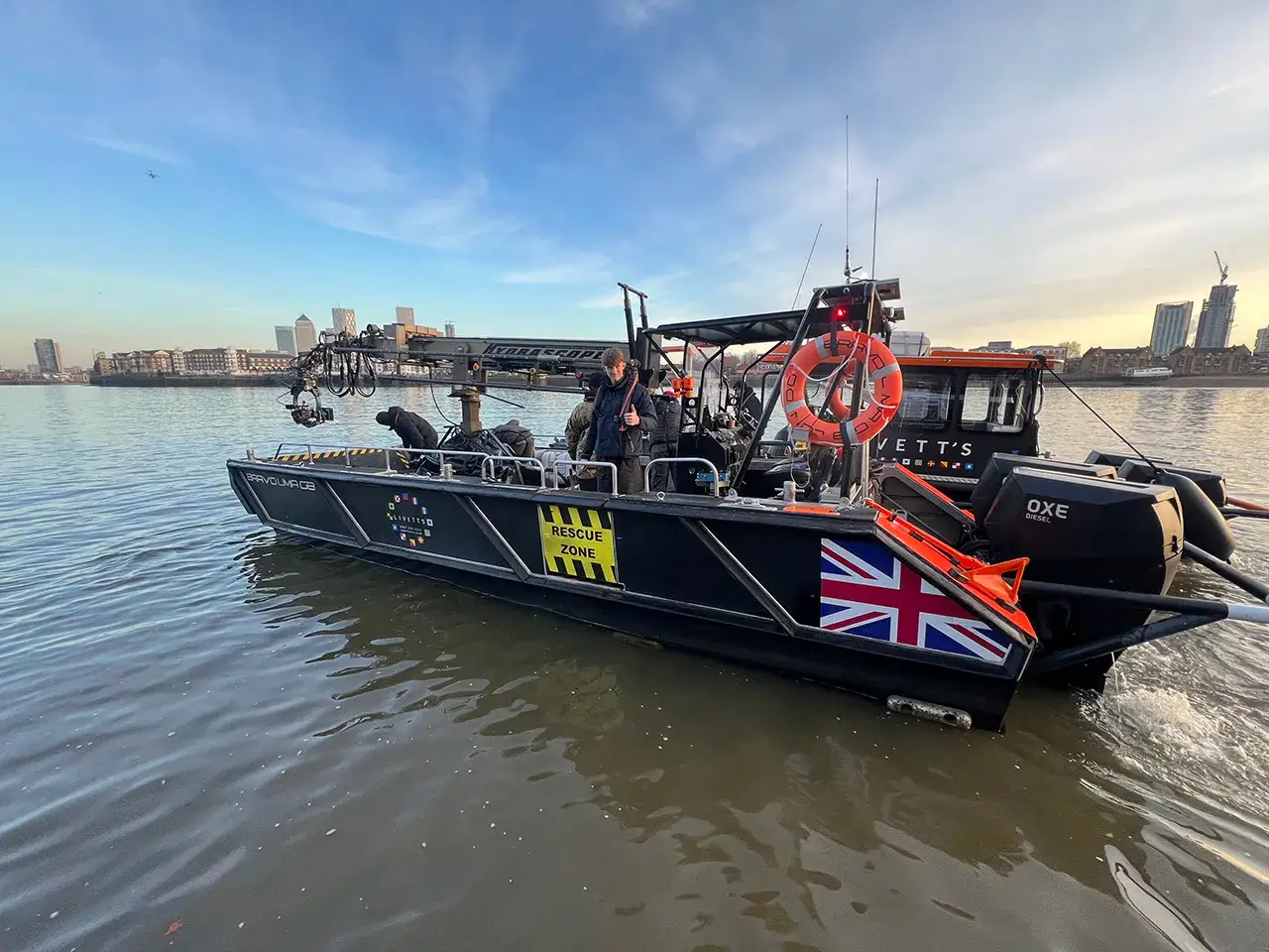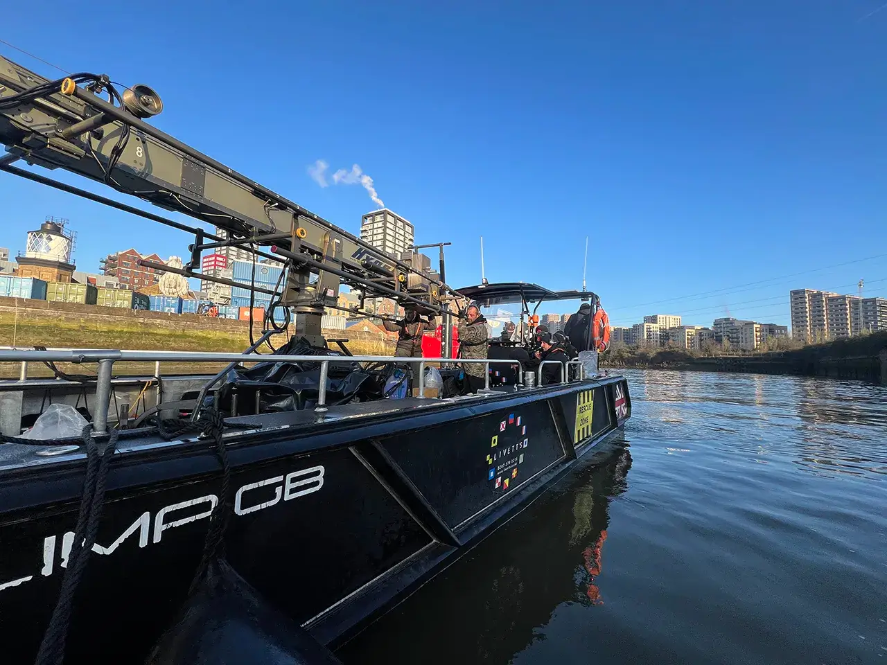 She is an ideal platform for a wide range of River Thames filming requirements, complementing our already extensive fleet of camera boats, safety boats and workboats. Features including an ultra low draft and opening bow door also make the craft an excellent base for all river wall or foreshore surveys.